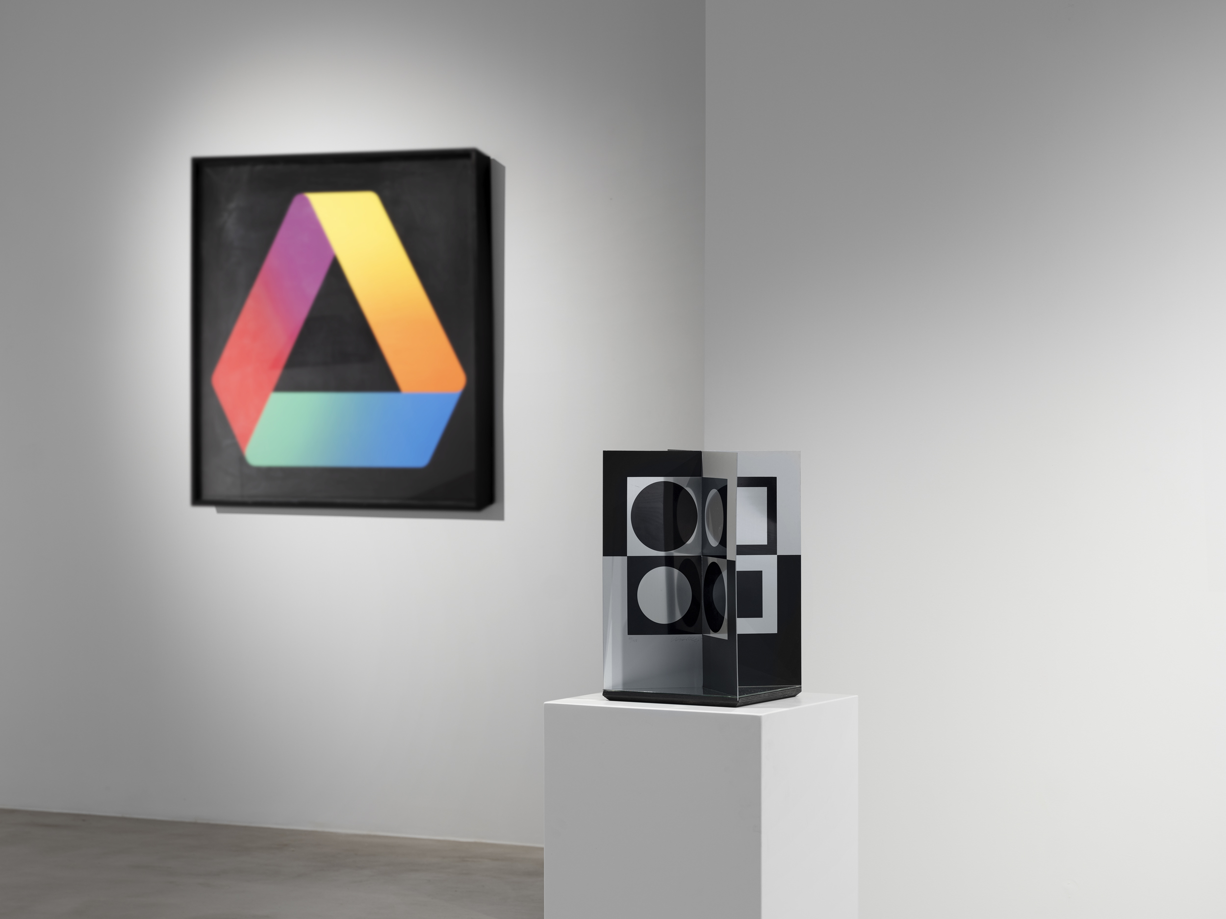 The Biennale, held from 1971 to 1985, involved leading figures of programmed and op-art kinetic movements from Europe, South America, and Japan, thereby bringing the artist’s hometown to the forefront of international contemporary art. The body of works is characterized by its diversity in type and technique: paintings, works on paper, and sculptures created with mixed media and the use of a wide variety of materials that radically depart from tradition.